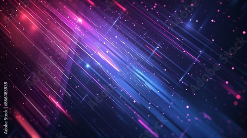 Naklejka premium Abstract background with glowing lines and particles, futuristic neon color scheme, dynamic and energetic design. Concept of technology, data, speed, movement, and digital art.