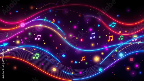 Fototapeta premium Abstract background with glowing lines, Music background, neon light music pattern wallpaper, glowing music pattern images, neon music notes wallpaper,