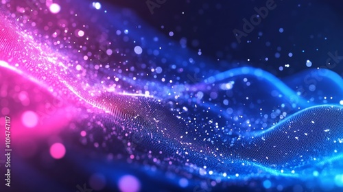 Fototapeta premium Abstract background with glowing particles in blue and pink.