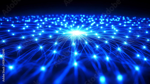 Naklejka premium Abstract background with glowing purple stars and lines on blue gradient...