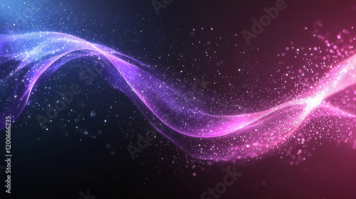 Fototapeta premium Abstract background with glowing wavy lines and sparkling dust in blue pink...
