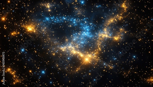 Fototapeta premium Abstract background with golden and blue glowing lines, stars, night sky,...