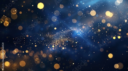 Obraz premium Abstract background with golden bokeh lights and blue nebula, perfect for holiday, festive, or celebratory designs.