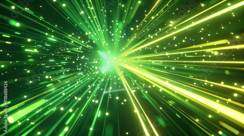 Fototapeta premium Abstract background with green light rays and yellow glow, representing speed...