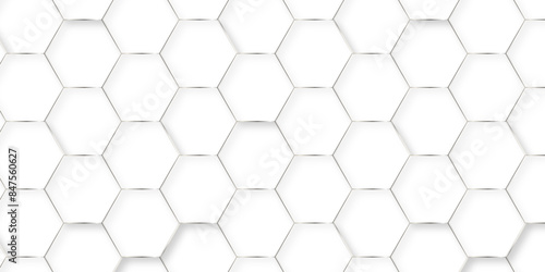 © MOHART PARK, Fototapeta premium Abstract background with hexagons. Geometric hexagon polygonal pattern background vector. seamless bright white abstract honeycomb grid 3d cell tile technology texture backdrop concept.