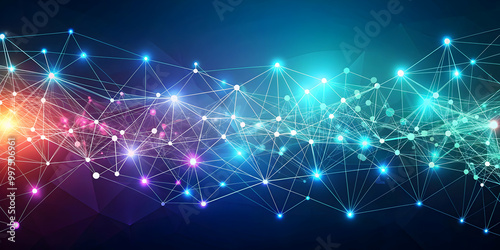 © janya, Obraz premium Abstract background with interconnected lines and dots , technology, digital, network, connection, communication, abstract