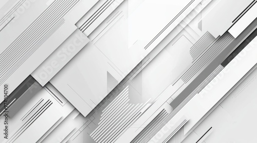 Obraz premium Abstract background with light gray diagonal stripes and geometric tech elements