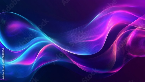 Fototapeta premium Abstract background with neon purple and blue waves, glowing design for presentation or poster.