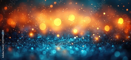 Obraz premium Abstract Background With Orange and Blue Bokeh Lights and Shimmering Glitter