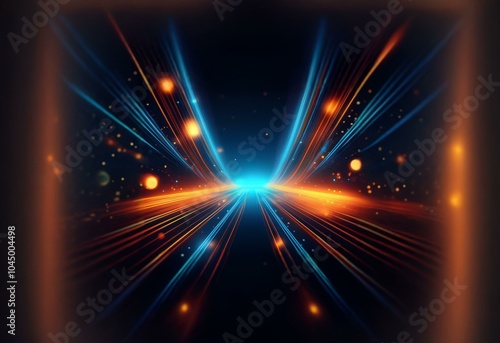 Obraz premium Abstract background with orange and blue light streaks, blurry bokeh, and dark background.