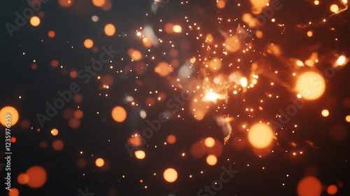 © adha, Fototapeta premium Abstract Background with Orange and White Glowing Particles on a Dark Backdrop