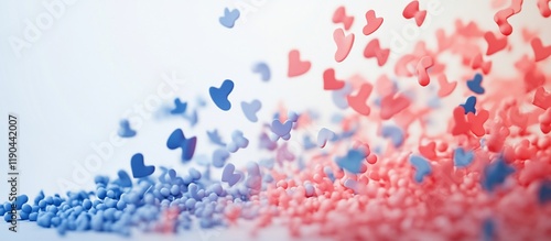 Fototapeta premium Abstract background with pink and blue hearts falling.