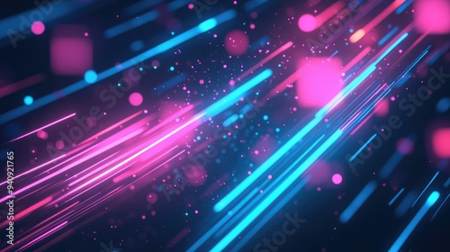 © Hafidhulkarim60, Fototapeta premium abstract background with pink blue glowing neon lines and bokeh lights