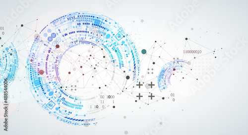 © Alex, Obraz premium Abstract background with plexus effect. Scientific and technological concept with the use of technical elements formed in the shape of a circle.