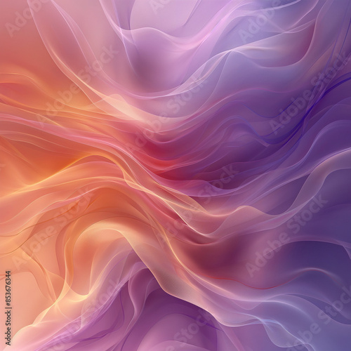 Fototapeta premium Abstract background with smooth, translucent waves in shades of orange, pink, purple, and lavender