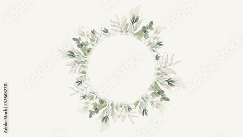 © IVONINA, Obraz premium Abstract background with space for text with green leaves and branches in watercolor style. Vector