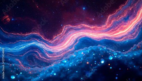 © Oksana , Obraz premium Abstract background with space nebula in blue and pink waves on a starry cosmos background