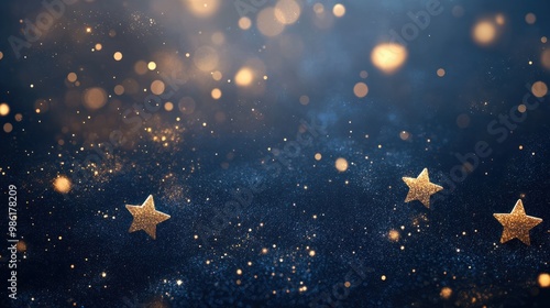 © Johannes, Fototapeta premium Abstract background with star Dark blue and gold particle transparent background