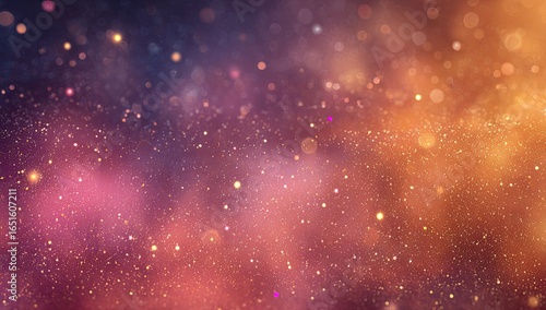 Obraz premium Abstract background with swirling nebula-like formations in shades of deep purple, pink, and orange, interspersed with varying sizes of bokeh lights, creating a dreamy, ethereal effect