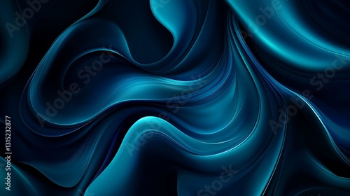 © BENDIA, Obraz premium Abstract background with swirling patterns in shades of deep blue and teal, on a dark backdrop