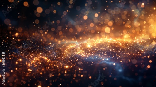 © admin_design, Fototapeta premium Abstract background with twinkling lights and glowing orbs in a dark blue and orange color scheme.