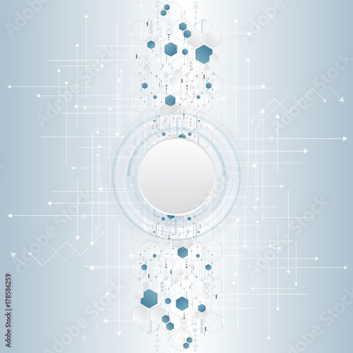 Obraz premium Abstract background with various technological elements. Vertical structure...