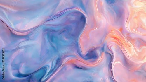 © Hunter, Fototapeta premium Abstract background with vibrant iridescent fluid, smooth holographic waves and dynamic swirling textures