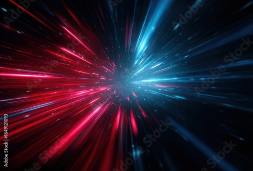 © Selvi, Naklejka premium Abstract background with vibrant red and blue light streaks radiating outwards from a central point