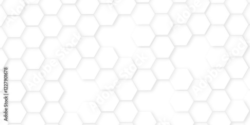 © MD SAGOR, Naklejka premium Abstract background with white color hexagons,Abstract white and grey color hexagonal geometric background with copy space. geometric mesh cell texture.
