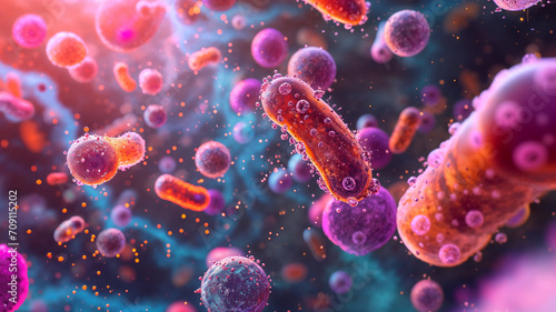 Fototapeta premium Abstract bacteria, probiotics, gram-positive bacteria and viruses of various...