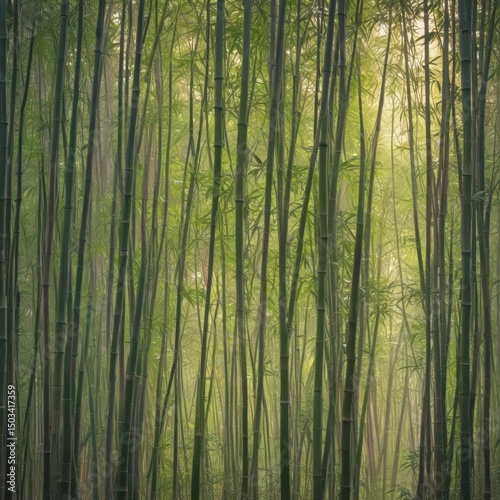 Naklejka premium Abstract bamboo forest, hazy light filtering through dense stalks, pattern,...