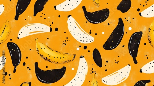 © Biggy, Naklejka premium Abstract banana pattern on an orange background