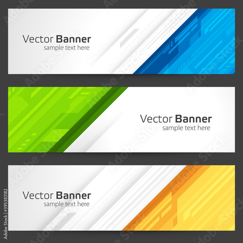 © Виктория Суханова, Fototapeta premium Abstract banner from geometric shapes vector template. Creative blue design with gradient green coating.