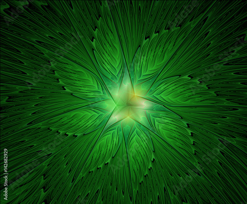 © svetlanass13, Naklejka premium Abstract beautiful fractal green flower on a black background