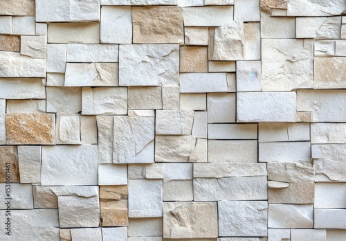 © Wicha, Obraz premium Abstract Beige and Off White Stone Tile Mosaic Wall Texture