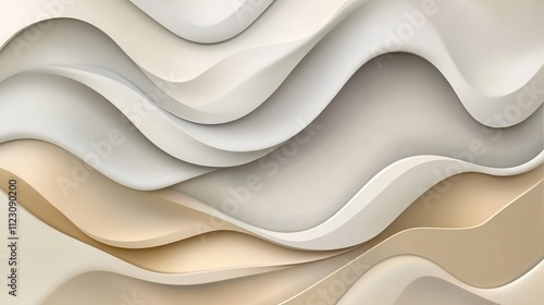 © PPS, Obraz premium Abstract beige and white wavy background.
