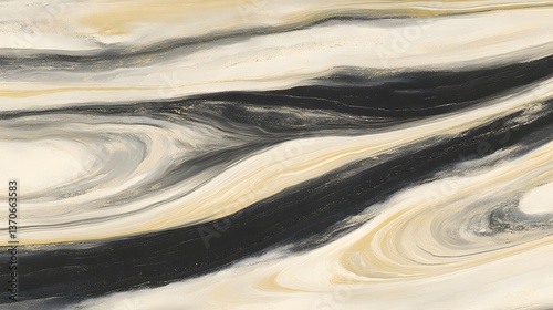 Obraz premium Abstract Beige Black Gold Swirl Marble Texture Painting
