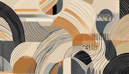 © Marie K, Fototapeta premium abstract beige grey geometric stripes seamless pattern