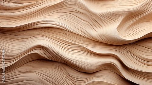 © denkar, Obraz premium Abstract Beige Waves: A Study in Smooth Curves and Textured Layers