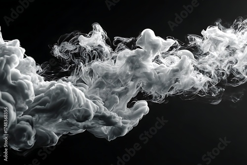 Fototapeta premium Abstract billowing white smoke cloud against a stark black backdrop creating...