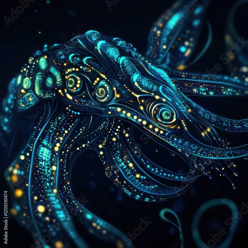 Obraz premium Abstract Bioluminescent Octopus: An ethereal digital artwork depicting a...