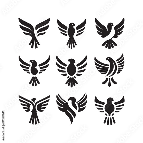 Obraz premium abstract bird logos, Minimalist bird icons, black silhouettes