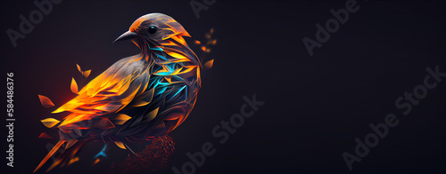 Fototapeta premium Abstract Bird on a Dark with copy space black background, Generative ai