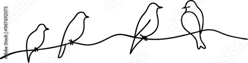 © Deecurve, Fototapeta premium Abstract birds on branches continuous one line drawing