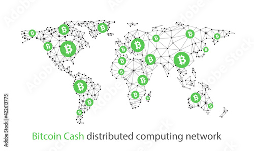 © Vjom, Fototapeta premium Abstract Bitcoin cash cryptocurrency wireframe global mesh background.