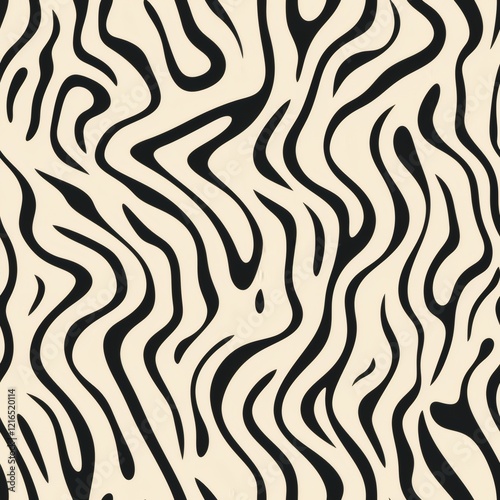© Katsiaryna, Obraz premium Abstract black and beige wave pattern with flowing lines creating a dynamic design