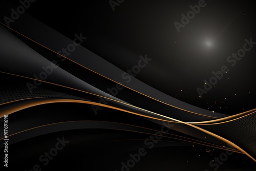 © JerseyKita, Fototapeta premium Abstract black and gold background with flowing lines and subtle sparkle.