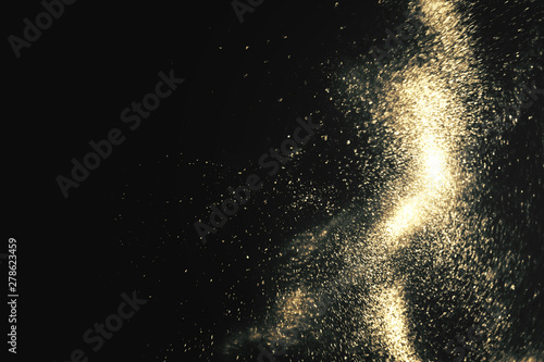 © Aleksandra Konoplya, Obraz premium Abstract black and gold festive glitter shimmering magic luxury background with copy space. de-focused