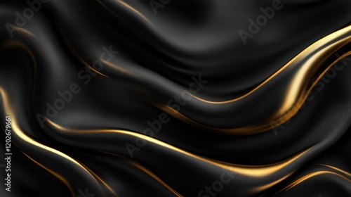 © thenort, Obraz premium Abstract black and gold flowing fabric texture.
