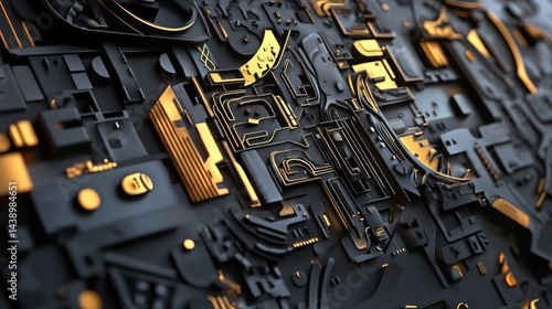 Fototapeta premium Abstract Black and Gold Geometric Pattern: A Futuristic Digital Art Piece